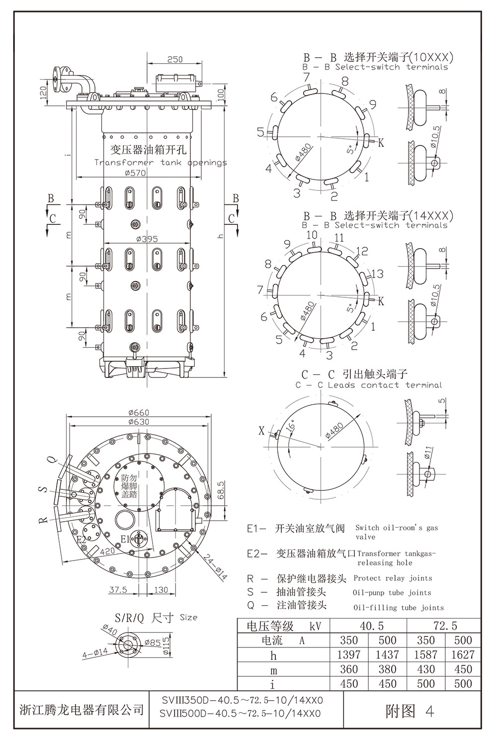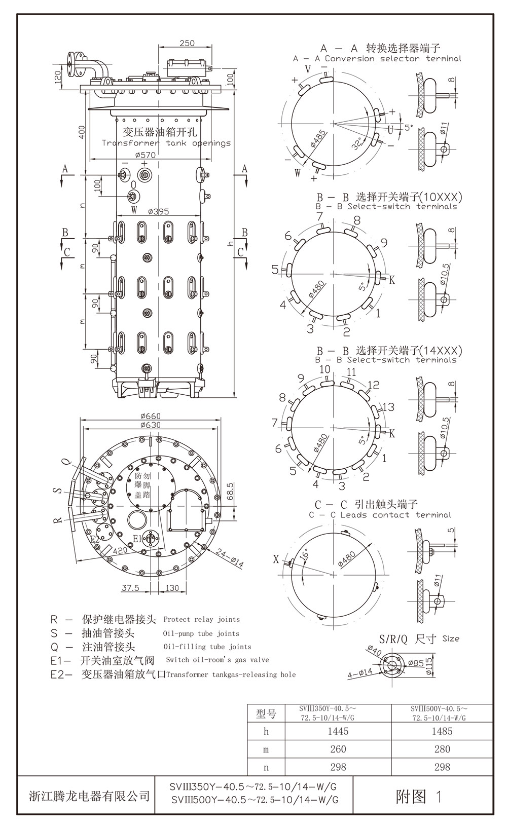 浙江騰;龍電器有限公司生產(chǎn)V型開(kāi)關(guān),三相,最大額定通過(guò)電流350A,中性點(diǎn)聯(lián)接,設備最高電壓72.5kV,圓周平面10個(gè)觸頭數,19個(gè)工作位置,三個(gè)中間位置,帶轉換選擇器,正反調壓。