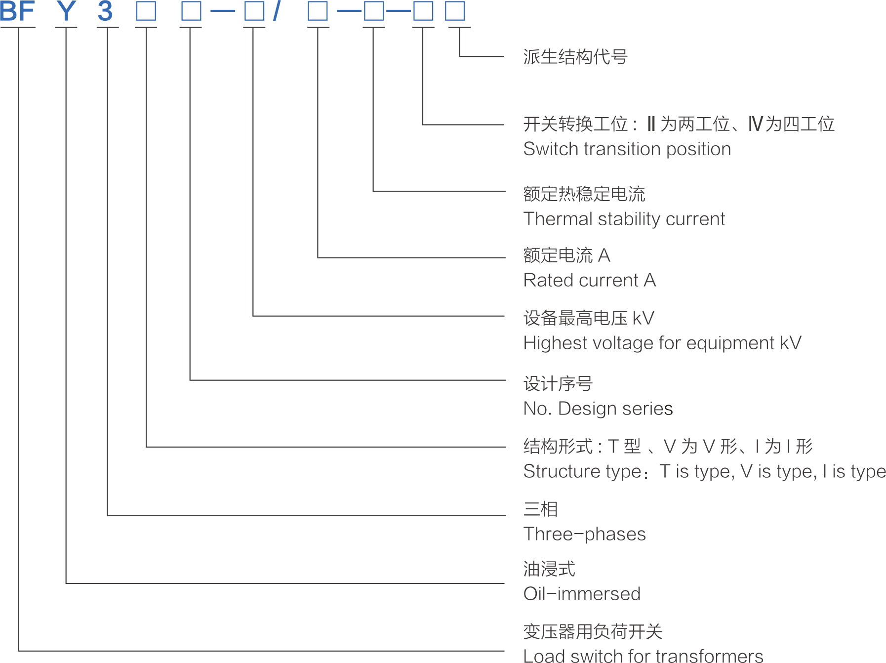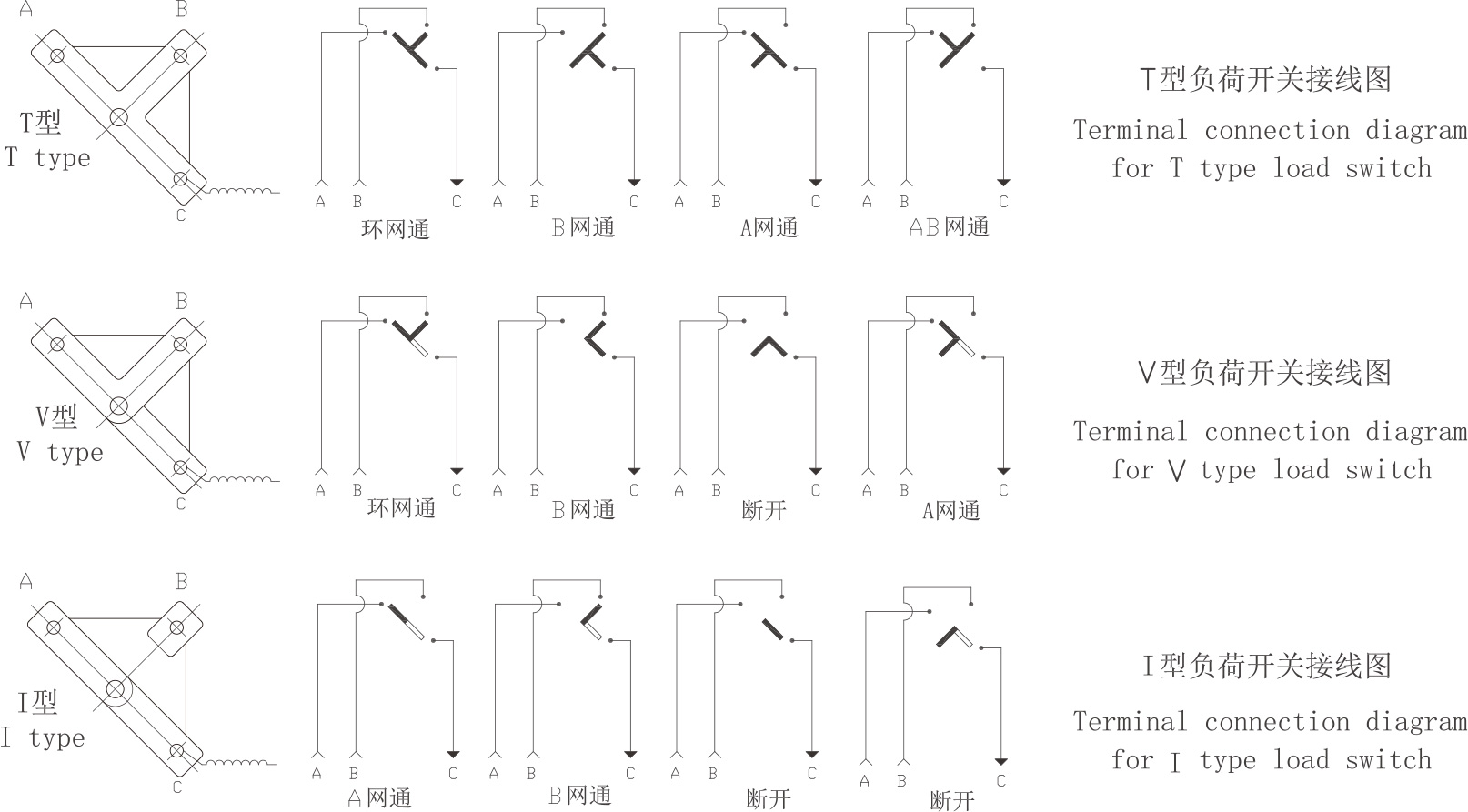 This switch is used for compounded type transformer. It is classified into four-position and two-position products. Thefour-position switch is divided into“T”type、“V”type and“I”.The switch is installed on the tank well of compoundedtransformer, the transformer oil is used for its insulating and are eliminated material. It is suitable for three phase power supply circuit with rated frequency 50Hz, highest voltage for equipment 1 2kV、40.5kV, rated current 315 A and 630A. In the radialfeed or loop feed supply system, it is used as controlling and protective device in the industry civil used electric energy. When functioned by operating pole, the switch can drive three phase linkage cut and close power resource or transfer supply method.
