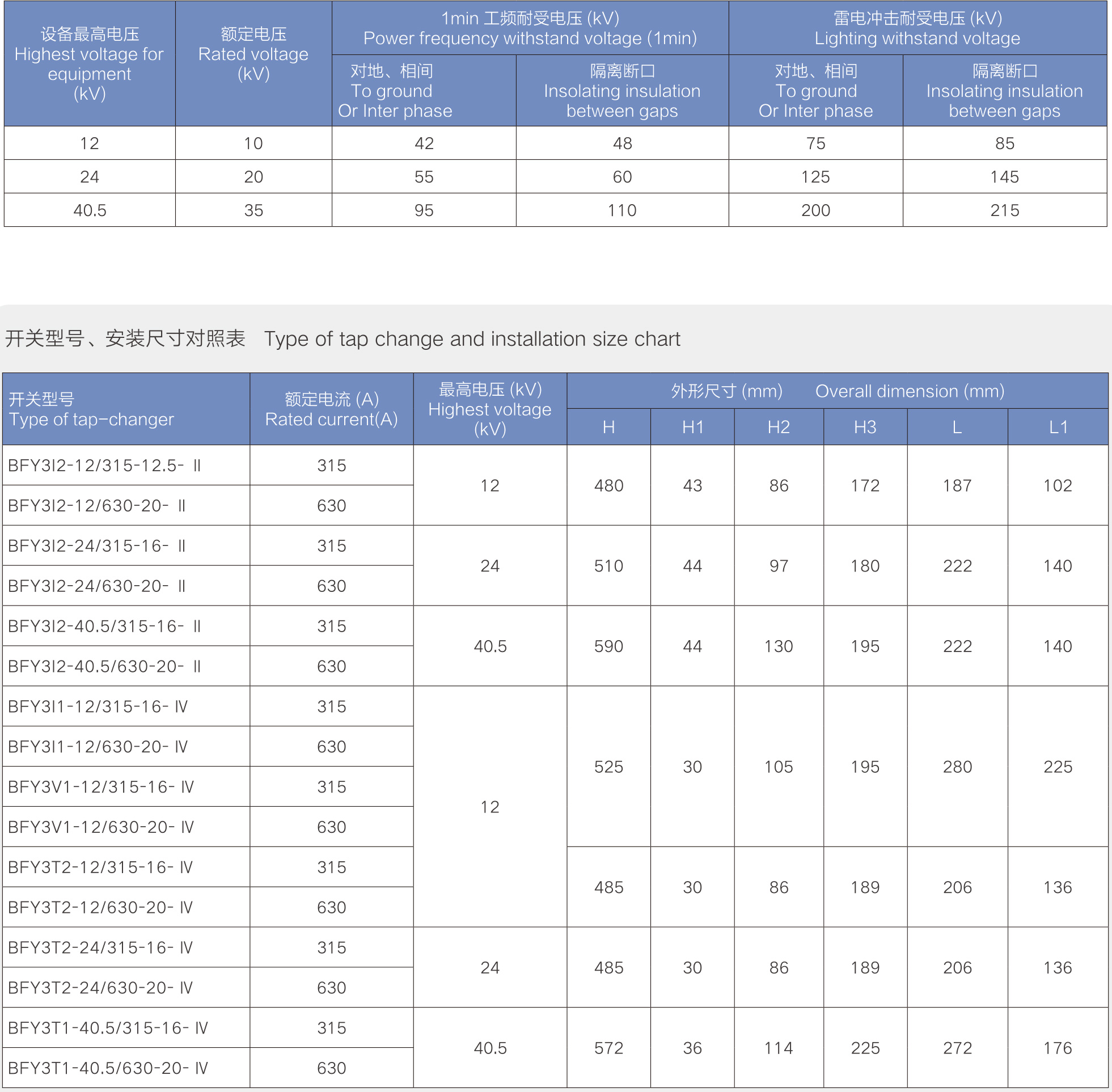 If 35kV two-position load switch with independent wiring is needed The type of BFY312-35/630-20- II K2 has two open and two close working position.