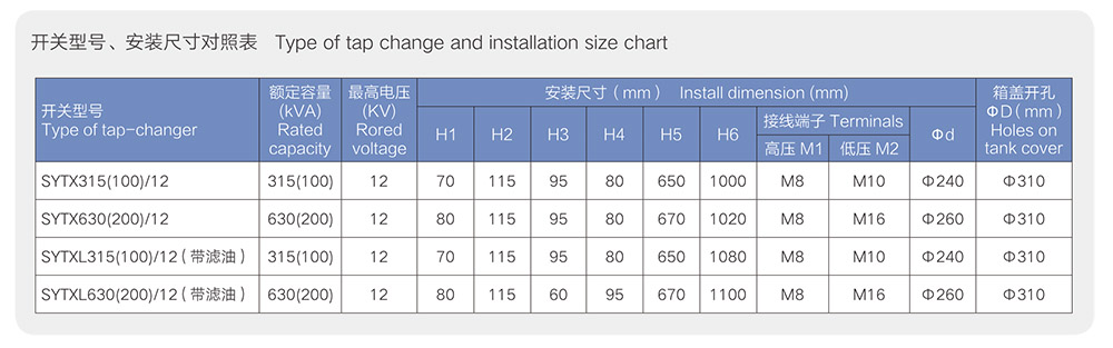This switch is suitable for the three phase oil-immersed capacity regulation power transformer with rated capacity of 315 (100), 400 (125) and 630 (200) at the primary of 50Hz and 60Hz, and the highest voltage of the equipment is 12kV.